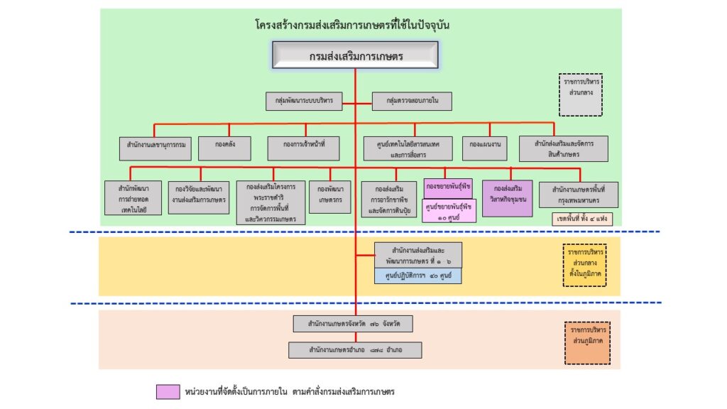ทั้งนี้ มีศูนย์ปฏิบัติการต่างๆ ในสังกัดสำนักงานส่งเสริมและพัฒนาการเกษตรที่ 1 – 6 จำนวน 50 ศูนย์ คือ ศูนย์ส่งเสริมและพัฒนาอาชีพการเกษตร 36 ศูนย์ และศูนย์ส่งเสริมเทคโนโลยีการเกษตร 14 ศูนย์ ได้แก่ ศูนย์ส่งเสริมเทคโนโลยีการเกษตรด้านแมลงเศรษฐกิจ 2 ศูนย์, ศูนย์ส่งเสริมเทคโนโลยีการเกษตรด้านอารักขาพืช 9 ศูนย์, ศูนย์ส่งเสริมเทคโนโลยีการเกษตรด้านวิศวกรรมเกษตร 2 ศูนย์ และศูนย์ส่งเสริมเยาวชนเกษตร 1 ศูนย์