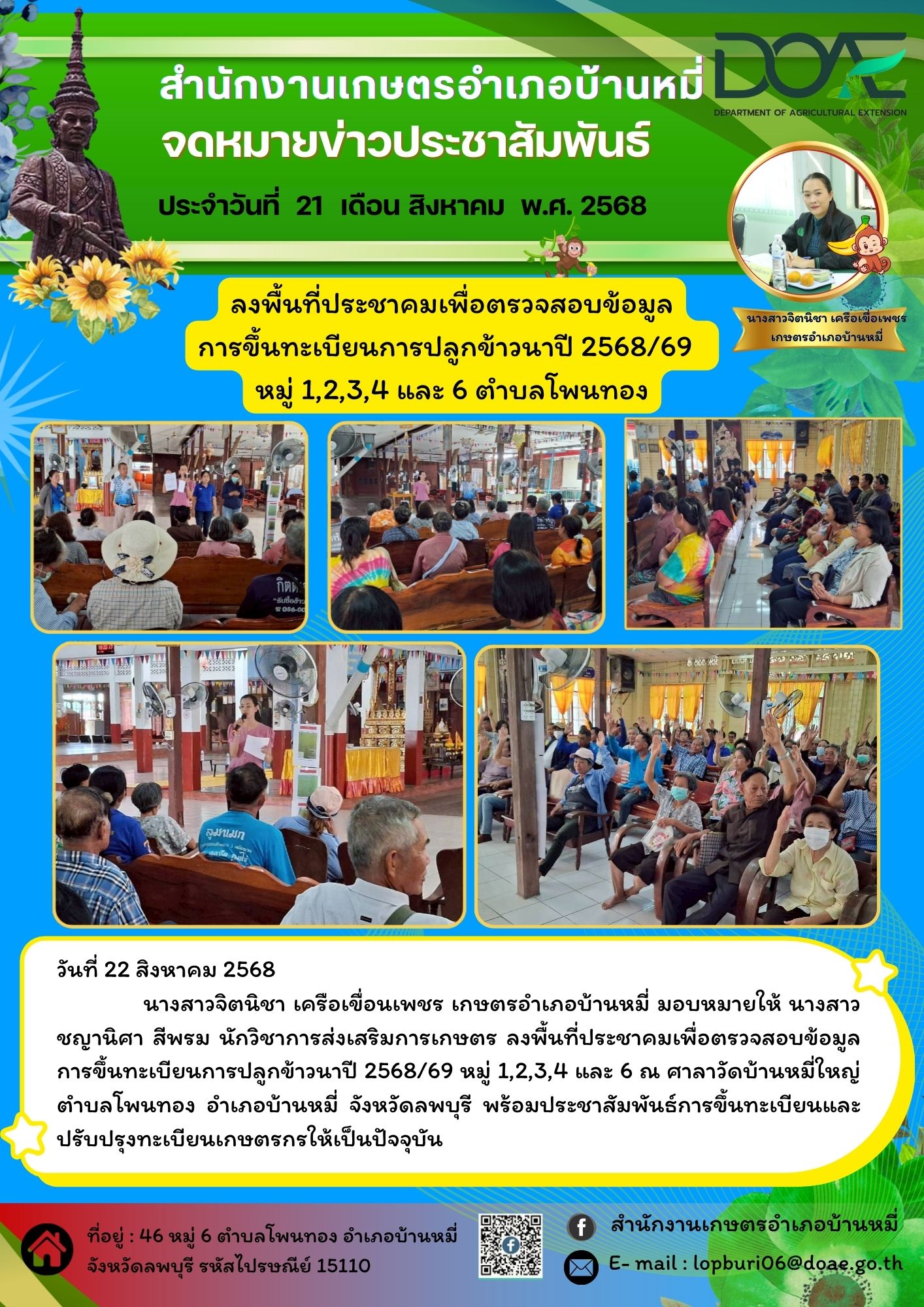 เกษตรบ้านหมี่ : ลงพื้นที่ประชาคมเพื่อตรวจสอบข้อมูลการขึ้นทะเบียนการปลูกข้าวนาปี 2568/69 หมู่.1,2,3,4และ6 ตำบลโพนทองอ่านต่อ