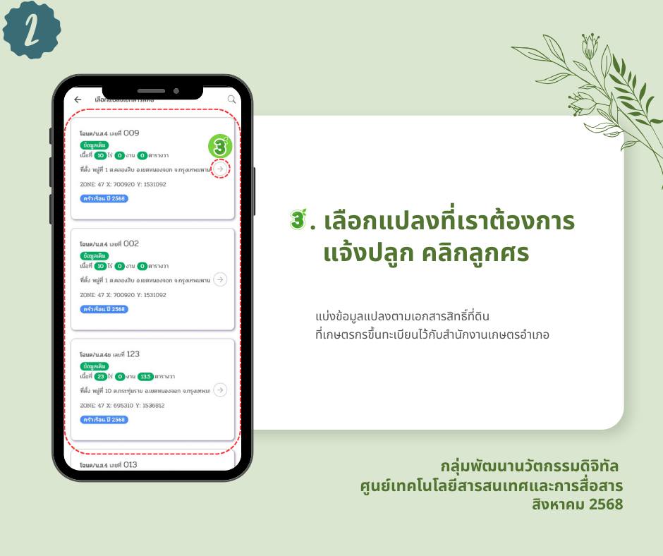 2. เพื่อจัดเก็บข้อมูลผังแปลงเพาะปลูกของเกษตรกรให้มีความครบถ้วน และเป็นปัจจุบัน โดยเน้นในปี 2568