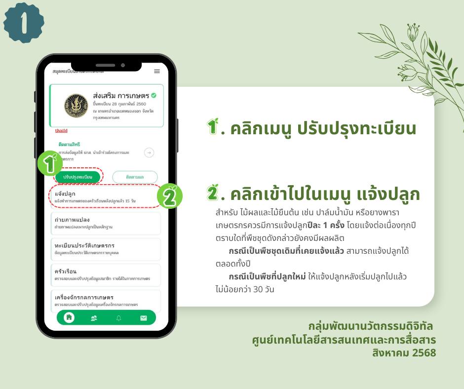 สำหรับเกษตรกรรายเดิม แปลงเดิม ที่เคยแจ้งปลูกปีที่ผ่านมา ให้ปรับปรุงเป็นปีปัจจุบัน