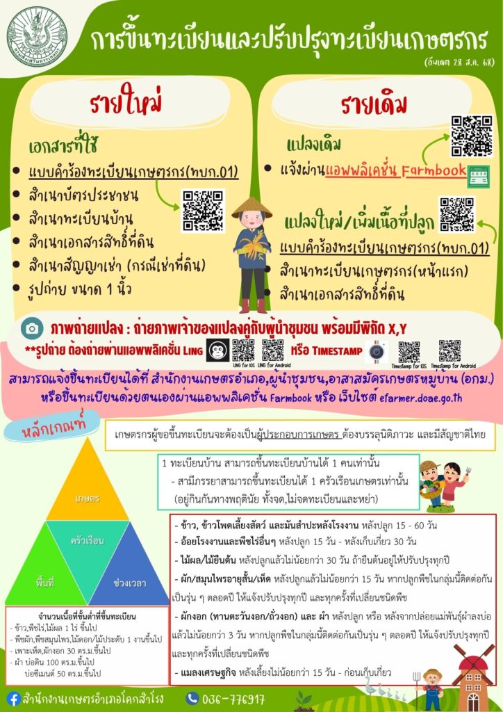 • เกษตรกรรายเดิม แปลงเดิม แจ้งข้อมูลได้ที่สำนักงานเกษตรอำเภอทุกแห่ง