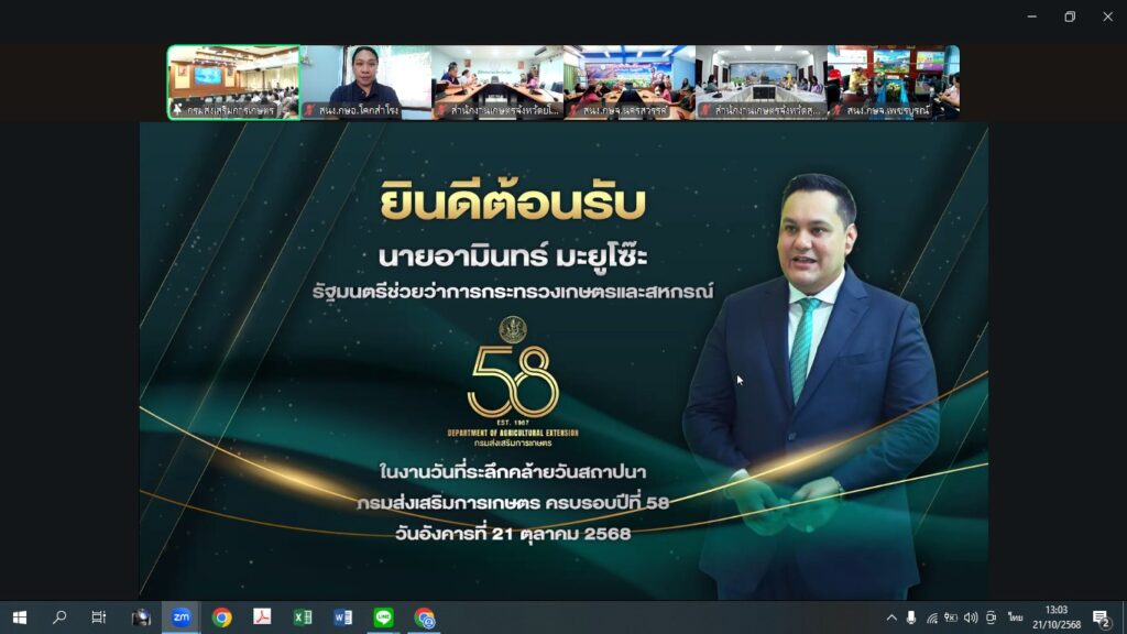 วันที่ 21 ตุลาคม ๒๕๖8 นางมัลลิกา กว๊ะ เกษตรอำเภอโคกสำโรง เข้าร่วมรับฟังนโยบายจากนายอามินทร์ มะยูโซ๊ะ รัฐมนตรีช่วยว่าการกระทรวงเกษตรและสหกรณ์ ผ่านระบบออนไลน์ Zoom Meeting ณ สำนักงานเกษตรอำเภอโคกสำโรง จังหวัดลพบุรี