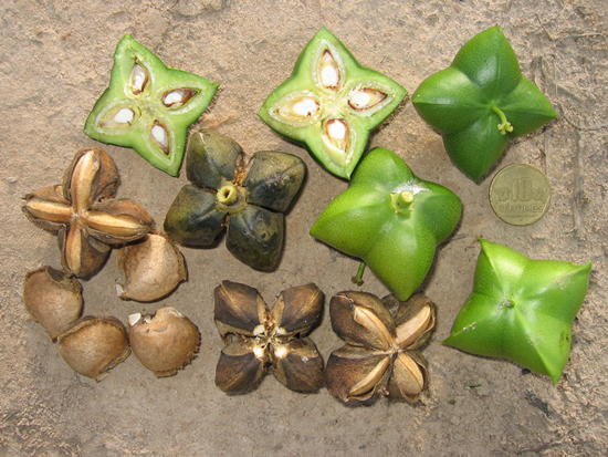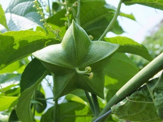 ผลถั่วดาวอินคาเรียกเป็นฝัก มีลักษณะเป็นแคปซูลที่แบ่งออกเป็นพูๆหรือแฉก 4-7 พู ขนาดฝักกว้าง 3-5 เซนติเมตร เปลือกผลอ่อนมีสีเขียวสด และมีประสีขาวกระจายทั่ว แล้วค่อยๆเปลี่ยนเป็นสีดำเมื่อสุก และแก่จนแห้งเปลี่ยนเป็นสีน้ำตาล พร้อมกับเปลือกปริแตกจนมองเห็นเมล็ดด้านใน