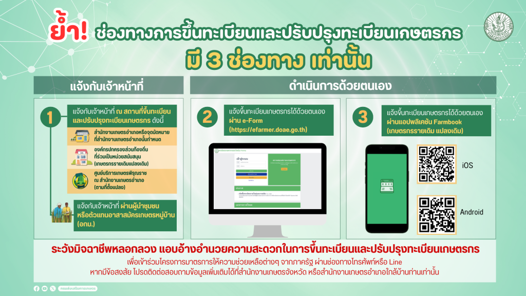 3. แจ้งขึ้นทะเบียนได้ด้วยตัวเองผ่าน E-form (https://efarmer.doae.go.th)