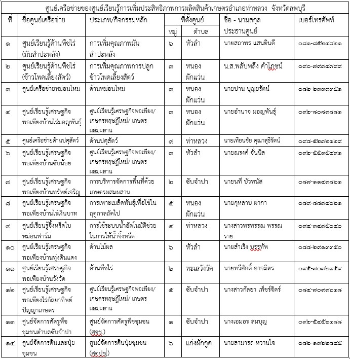 ศูนย์เรียนรู้การเพิ่มประสิทธิภาพการผลิตสินค้าเกษตร (ศพก.) อำเภอท่าหลวง