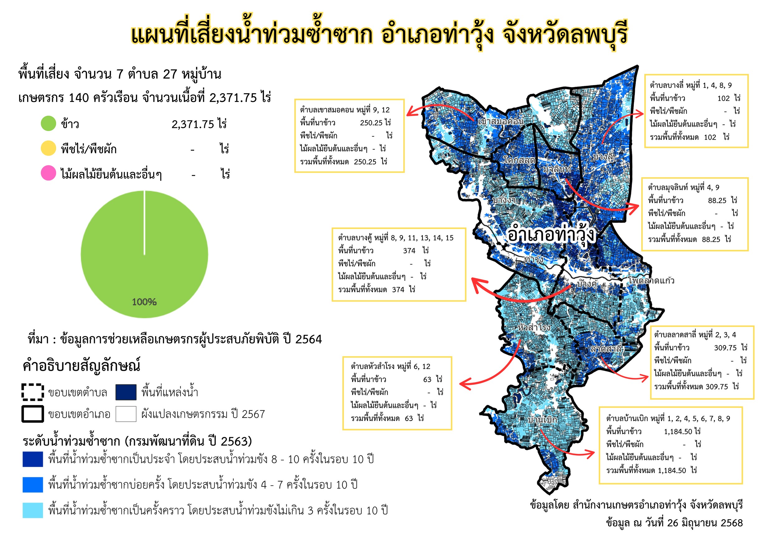 แผนที่เสี่ยงน้ำท่วมอำเภอท่าวุ้ง และ การเตรียมการป้องกันบริการจัดการภัยพิบัติ ในช่วงฤดูฝน 2568